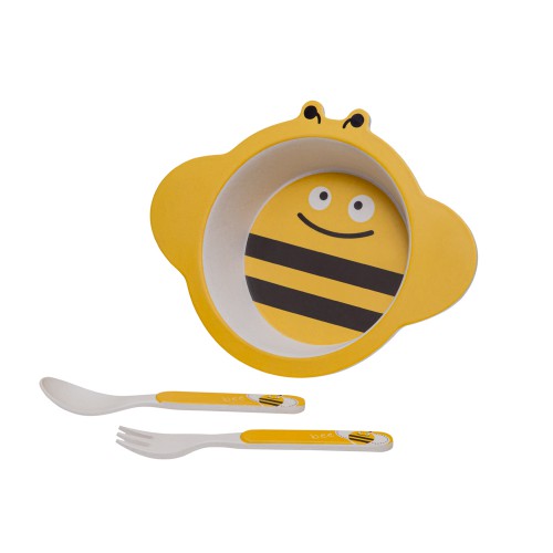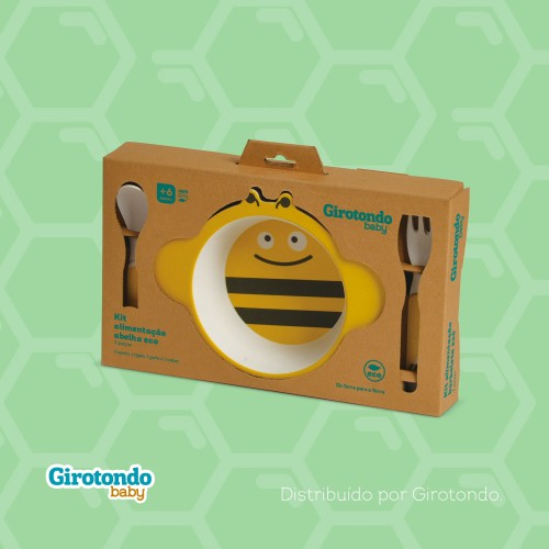 Contém 3 peças: 1 tigela, 1 garfo e 1 colher.