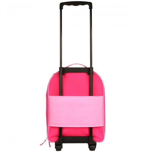 Mochila de rodinhas ideal para escola, viagens e passeios. Possui bolso frontal e alça retrátil.
